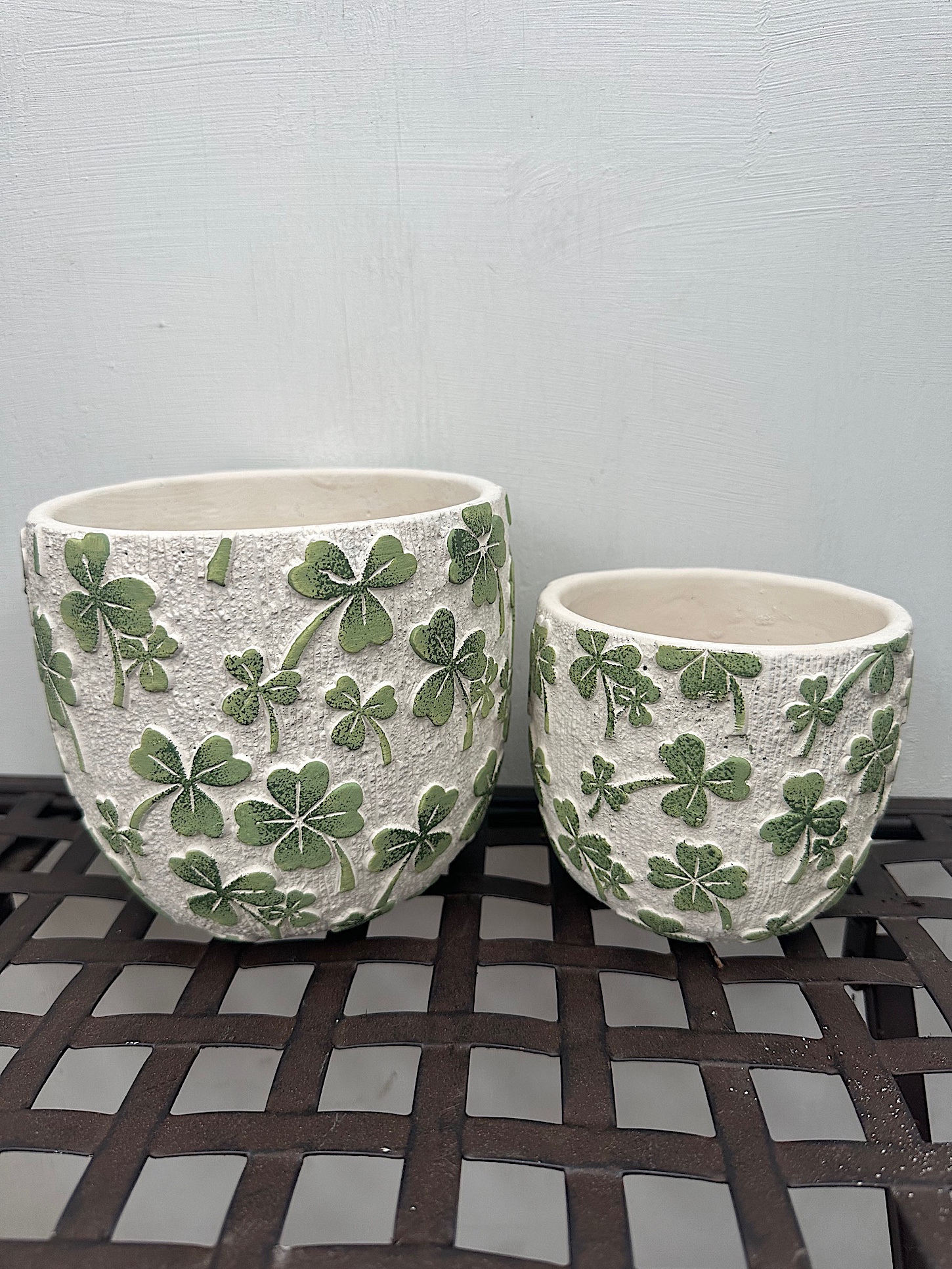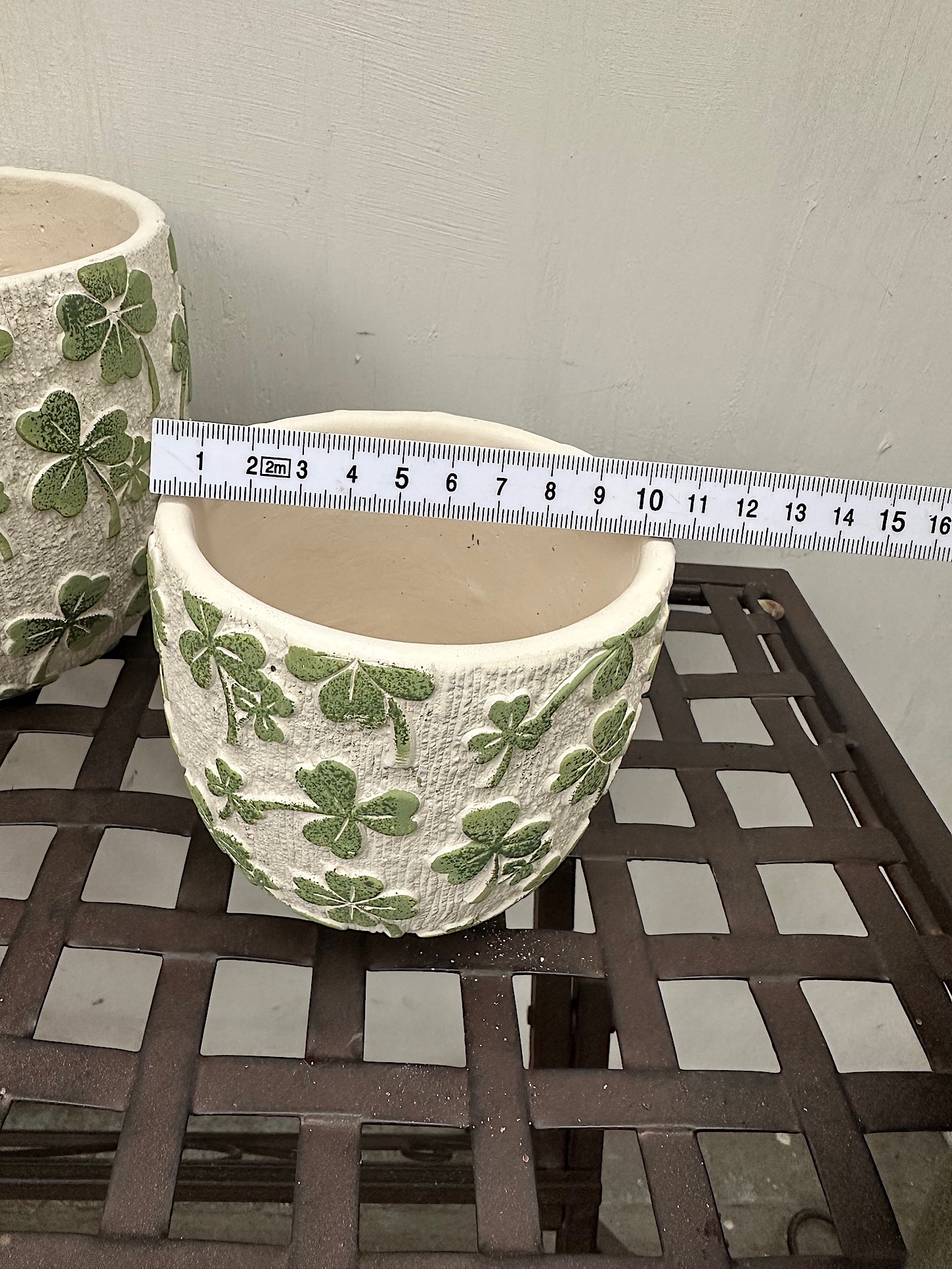 Produktinformationen "Übertopf Keramik (i. 10,5cmT.) , creme mit grünen Kleeblättern"