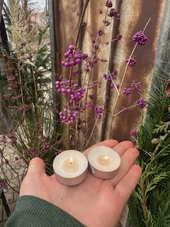 Gehölz: Bienenweide die Blüte und die lila Perlen zieren im Winter. Wunderschöne gelbe Herbstfärbung der Blätter. Schnittverträglich im Winter. Sehr widerstandsfähig. Als Idee: Im Vordergrund passend: Polystichum Jade, Cyclamen purpurascens, Arachnoides der Eidechsenfarn. Naturstandort China. (Höhe stand. 9.10.25)
