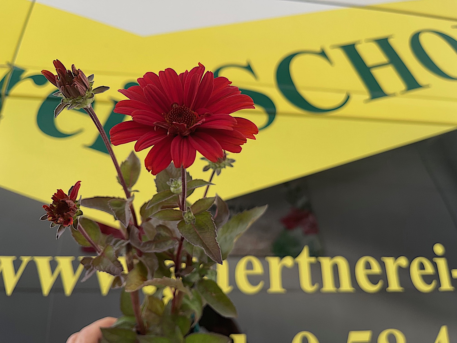 Blüte rot und Blatt dunkellaubig- Neue Sorte. Staude: Bienenweide und eine lange Haltbarkeit jeder einzelnen Blüte. Sehr beeindruckend die Farbwirkung.