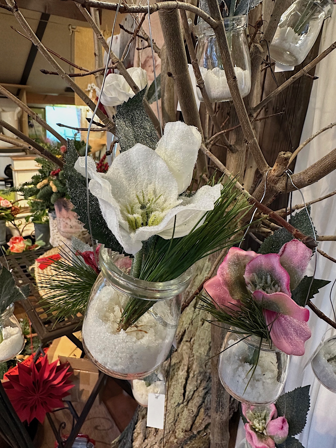Christrose im Glas . weiss, rosa, oder rot Mix. Der Packer nimmt 2 verschiedene möglichst. Die Kunstchristrosen stecken in festen weissen Kristallen, wie Sand wirkend . Mit Draht zum Aufhängen, können aber auch ideal stehen. Zum Beispiel in dunkleren Räumen, auf Anrichten, Tischdeko Restaurant, Seniorenresidenzen, Autohäuser, Optiker, ...