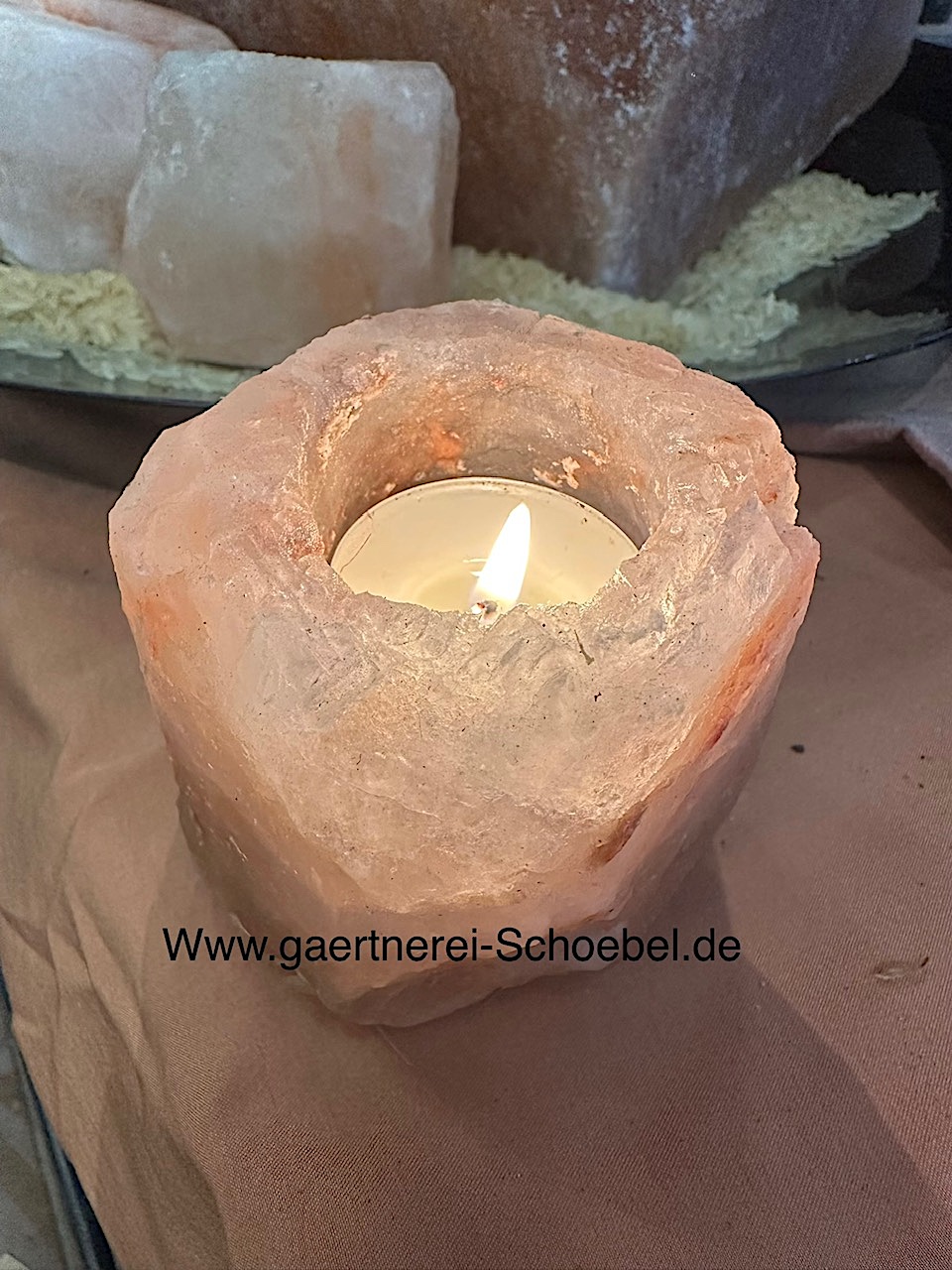 Ein echter Salzstein Brocken für ein Teelicht gemeisselt. Passend für ein Teelicht, gibt dann ein ganz besonderes Licht.